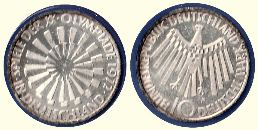 Diese 10 D-Mark Münze wurde aus Anlaß der XX. Olympischen Sommerspiele 1972
