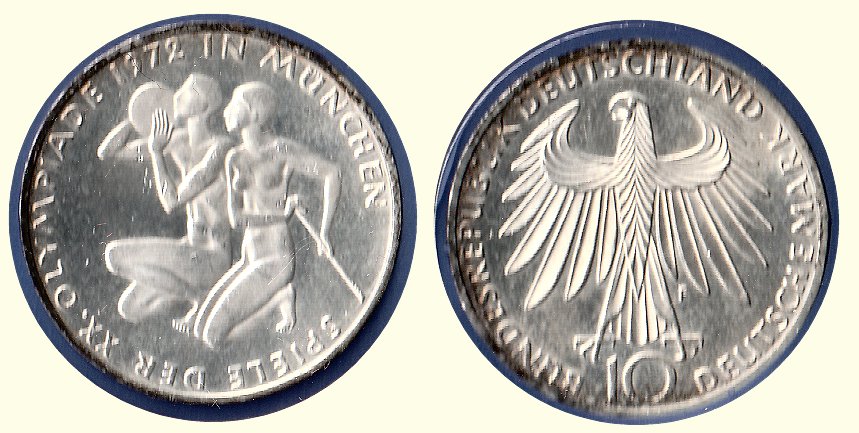 Diese 10 D-Mark Münze wurde aus Anlaß der XX. Olympischen Sommerspiele 1972