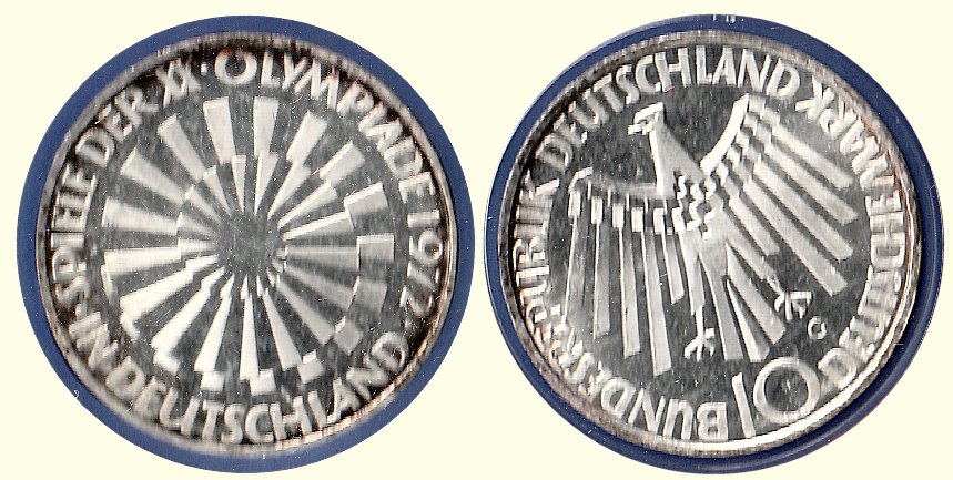 Diese 10 D-Mark Münze wurde aus Anlaß der XX. Olympischen Sommerspiele 1972