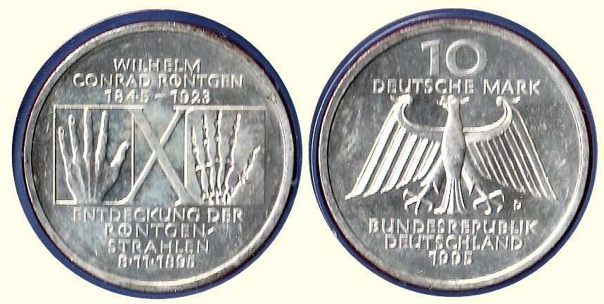 Jubiläum Wilhelm Conrad Röntgen: 10-DM-Münze 1995.