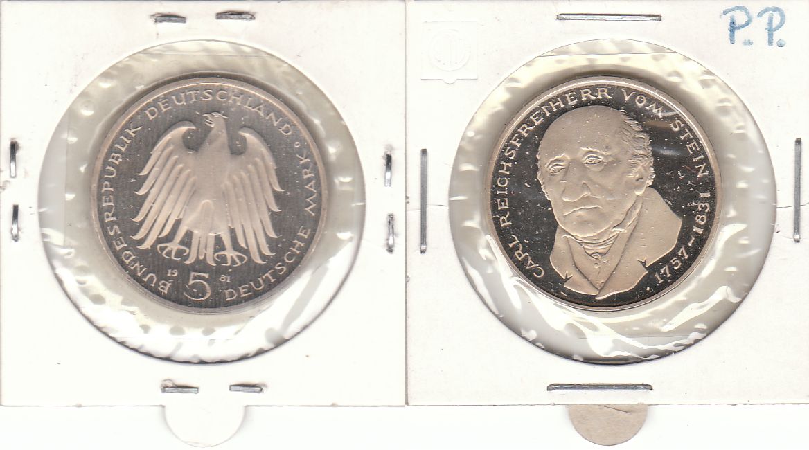 5 DM 1981 BRD Freiherr vom und zum Stein pp5 DM 1981 BRD Freiherr vom und zum Stein pp