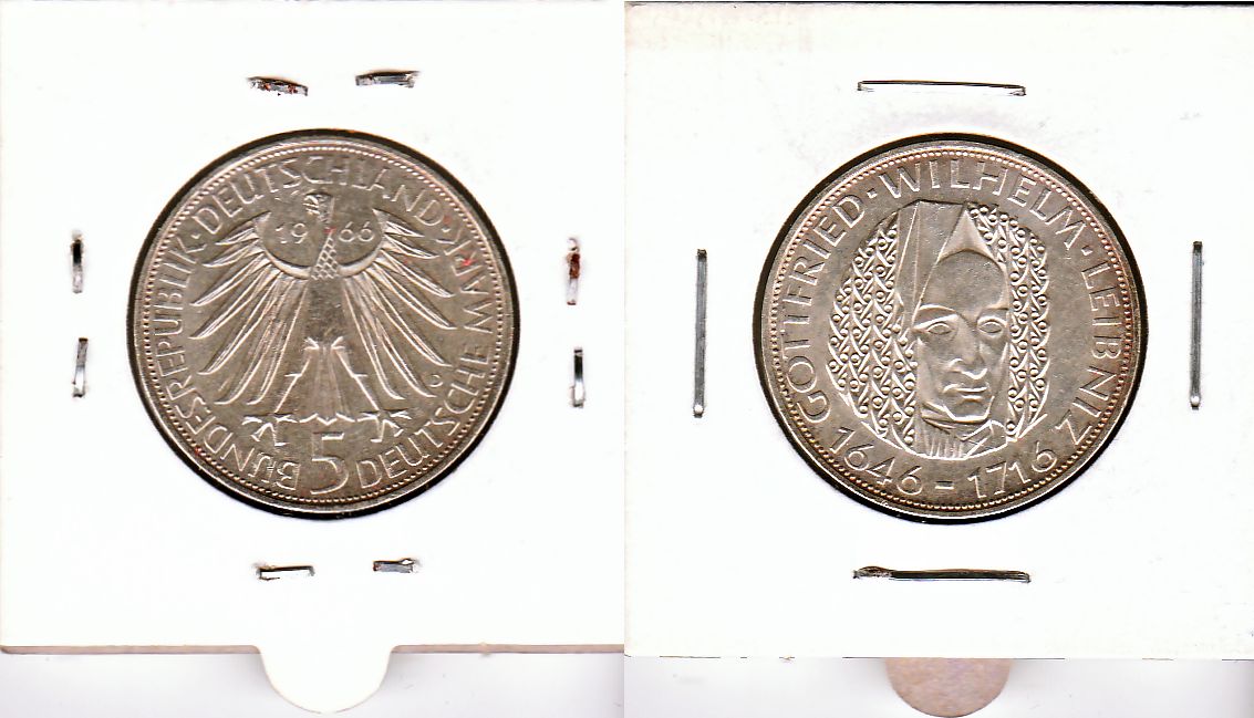 5 DM 1966 BRD Gottfried Wilhelm Leibniz st