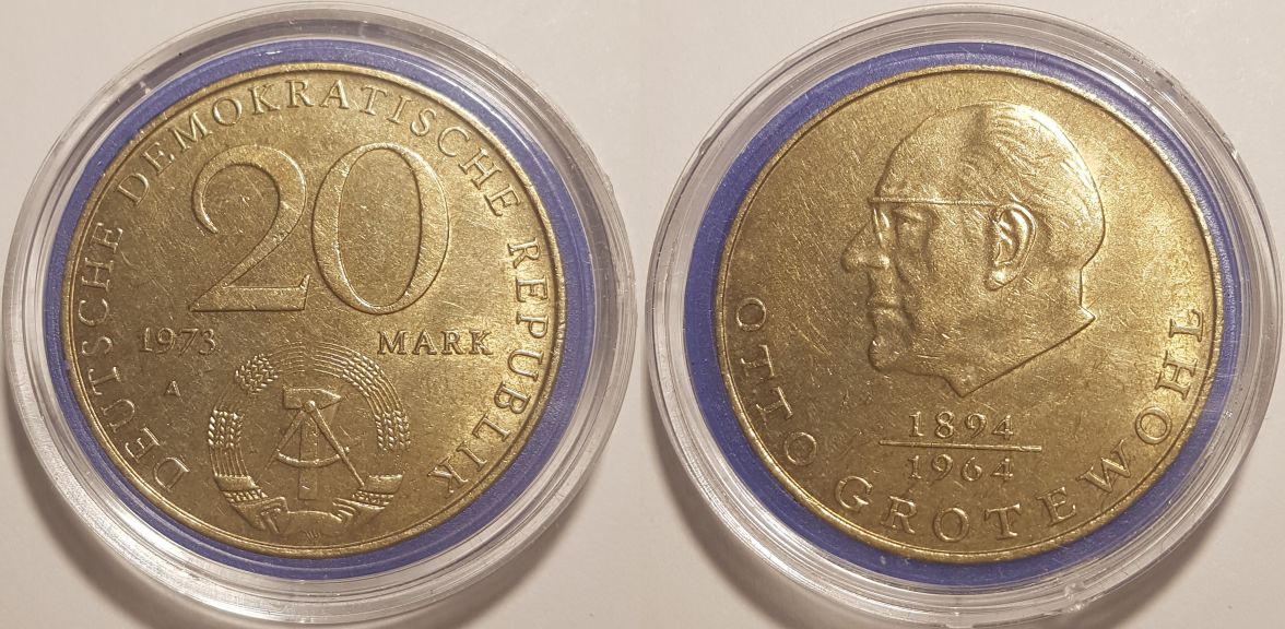 Erhaltung: (ss )Material: Kupfer-NickelGewicht: 15,00 gDurchmesser: 33,00 mmAuflage: 2.534.724Otto Grotewohl