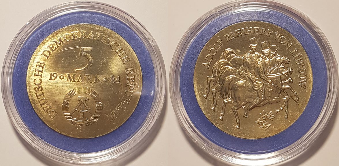 5 MarkMaterial: Kupfer/NickelErhaltung: Stempelglanz (st)Gewicht: 12,200 gJahrgang: 1984Durchmesser: 29,00 mmLand: Deutsche Demokratische Republik