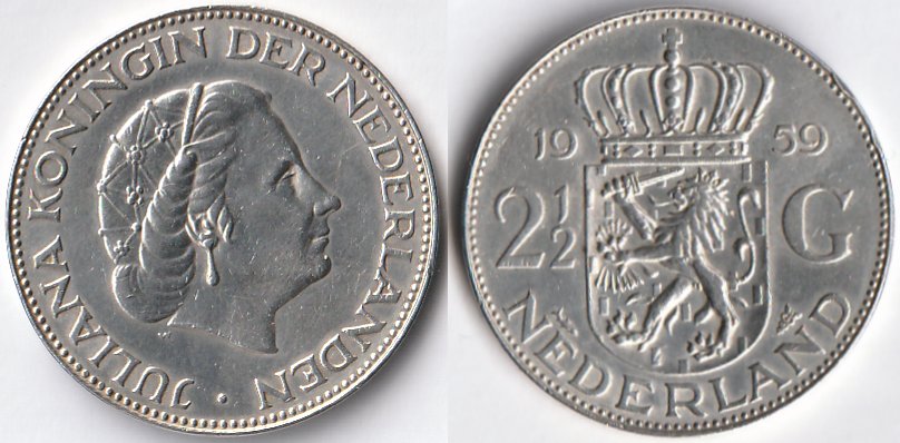 1959 2 ½ Gulden Niederlande ss1959 2 ½ Gulden Niederlande ss